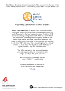 10% of card sales support World Central Kitchen's work to feed displaced people in the war-torn Middle East.