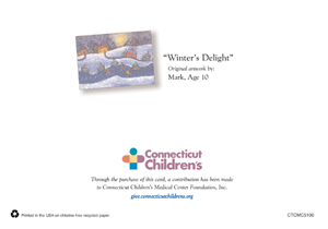 Youngsters enjoy skating through town on a frozen meandering stream in this original painting by Mark, Age 10.